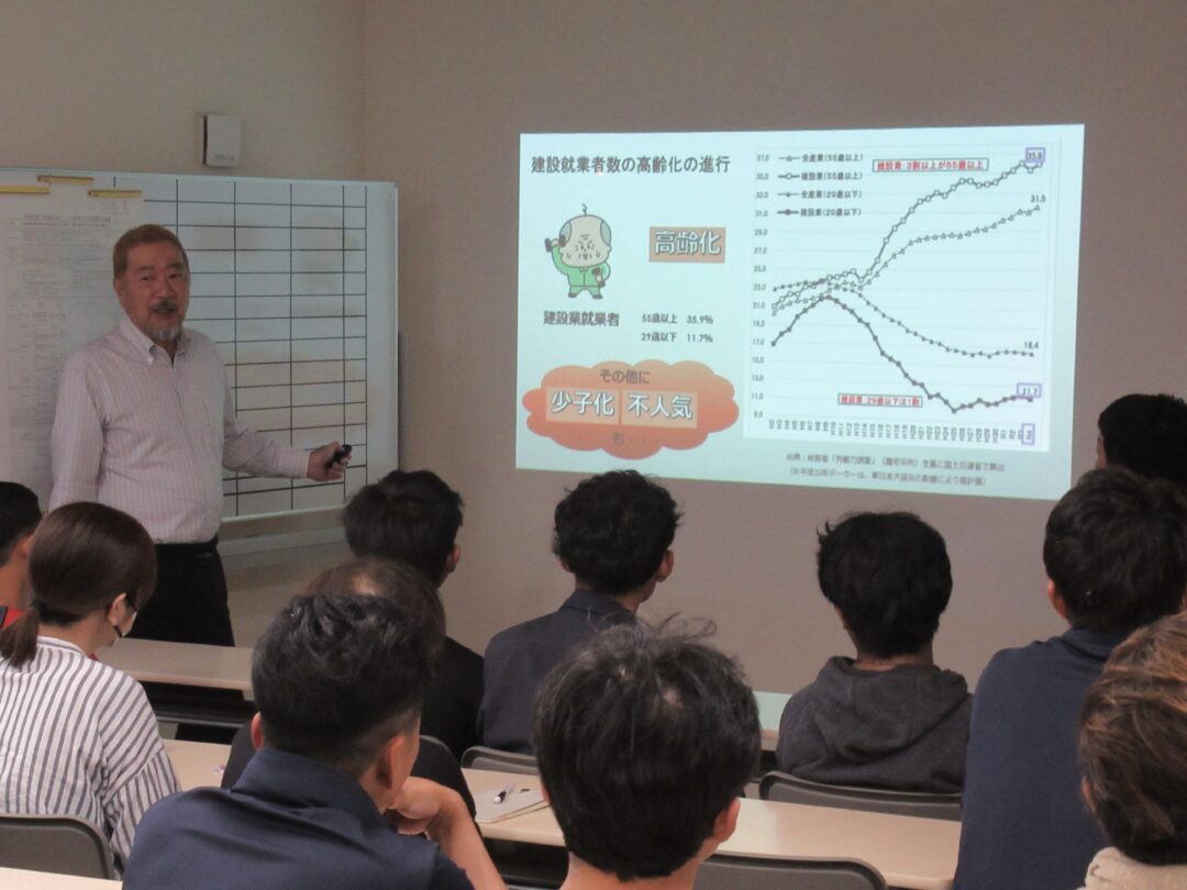 鹿島建設は、当社にとっても重要なお取引先のひとつであり、業界をリードする同社で培われた長年の実務経験や豊富な知見に基づき、「就業者数の推移」や「安全管理の重要性」など、建設業界が直面する課題や今後の展望について、具体的な事例を交えながらご講演いただきました。